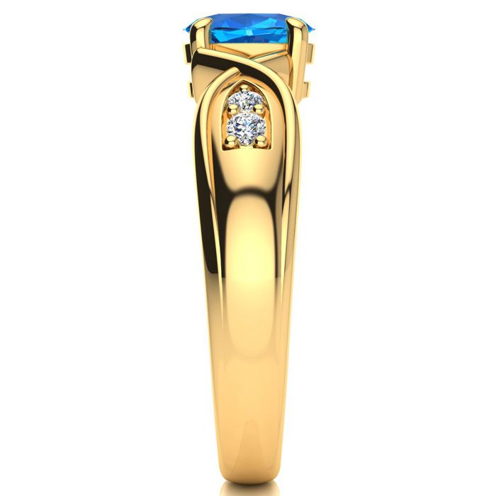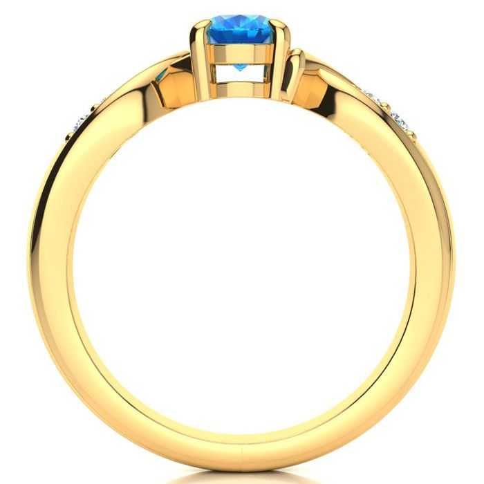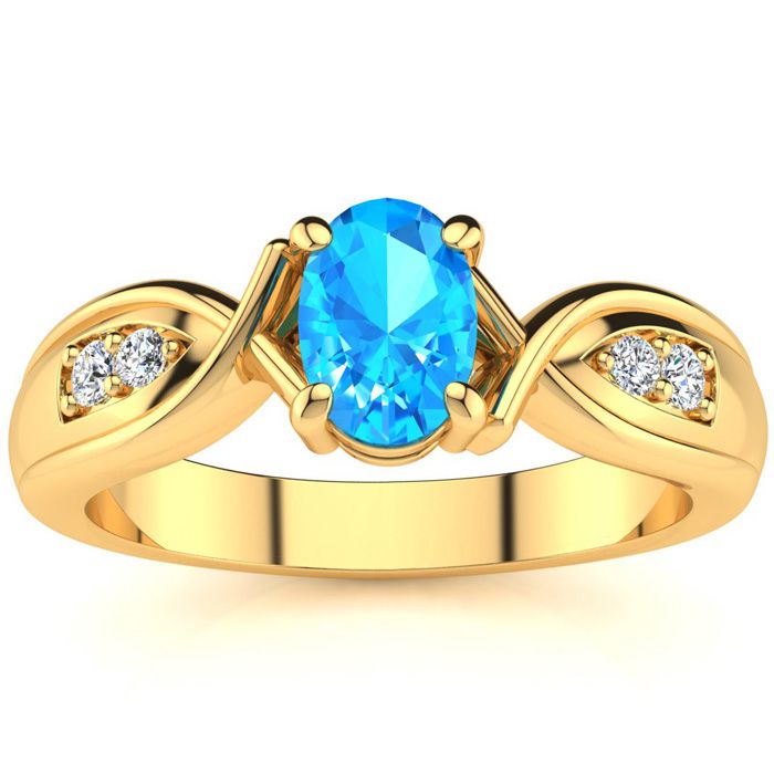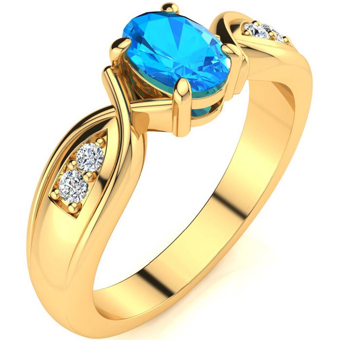 1 Carat Oval Shape Blue Topaz and Four Diamond Ring In 10 Karat Yellow Gold
