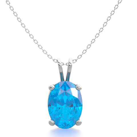 1 Carat Oval Shape Blue Topaz Necklace In Sterling Silver, 18 Inches