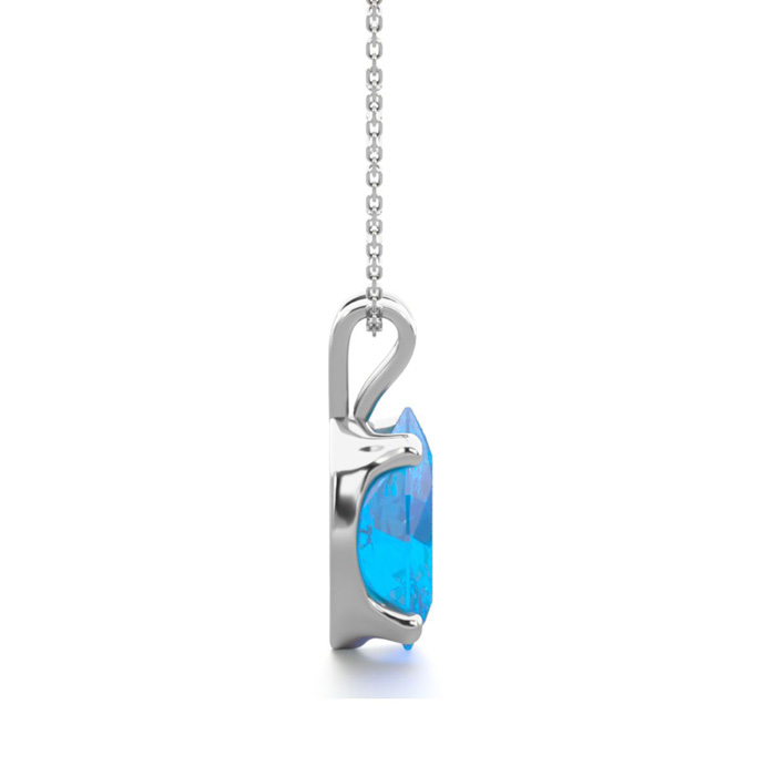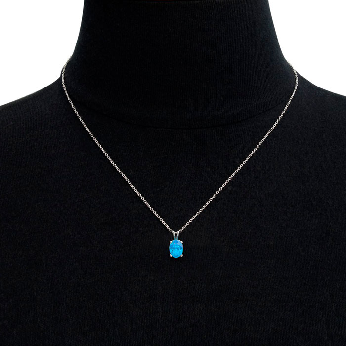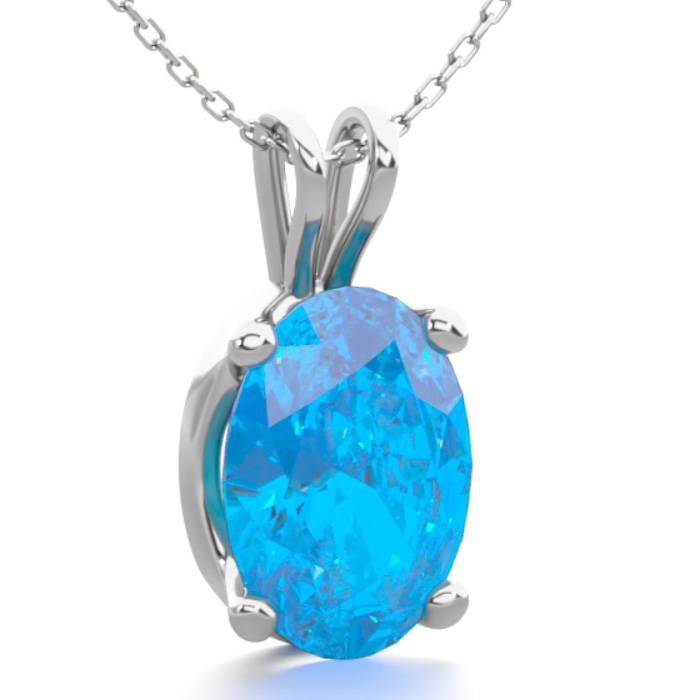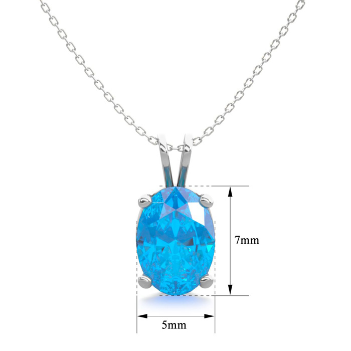1 Carat Oval Shape Blue Topaz Necklace In Sterling Silver, 18 Inches