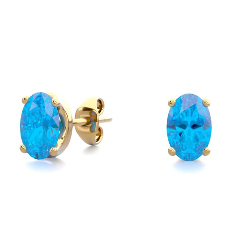 1 Carat Oval Shape Blue Topaz Stud Earrings In 14K Yellow Gold Over Sterling Silver