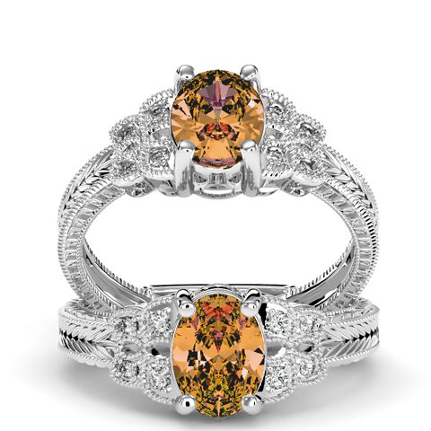 1 Carat Oval Shape Citrine and Diamond Ring In 10 Karat White Gold