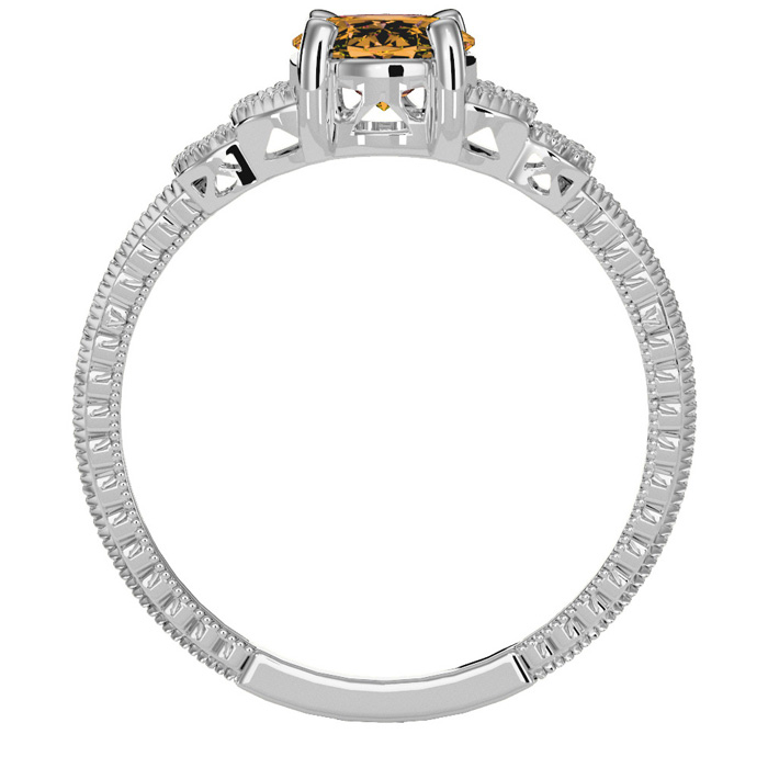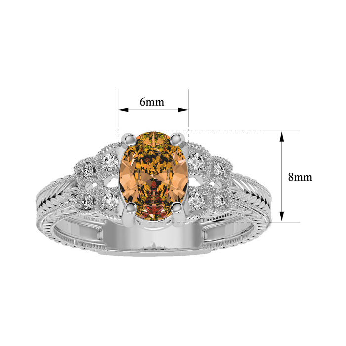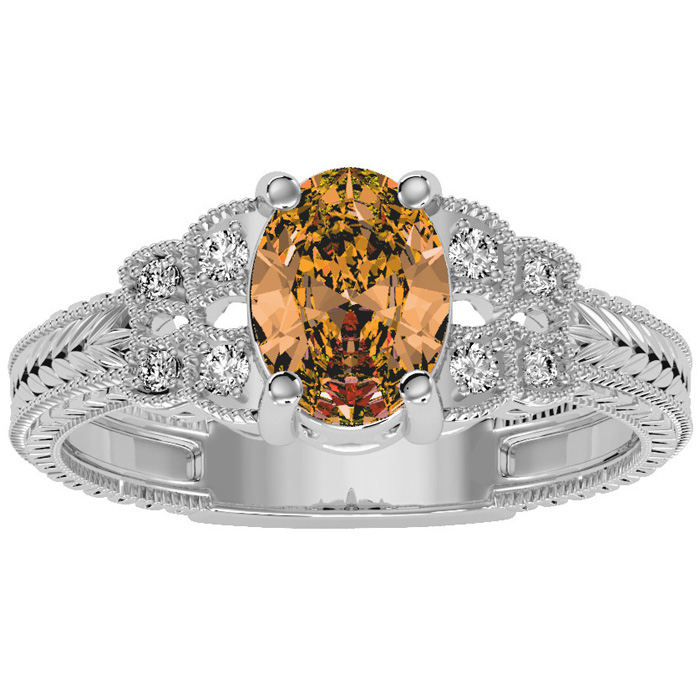 1 Carat Oval Shape Citrine and Diamond Ring In 10 Karat White Gold