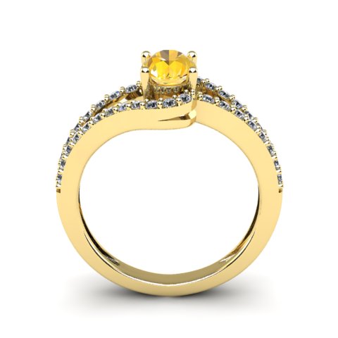 1 Carat Oval Shape Citrine and Fancy Diamond Ring In 14 Karat Yellow Gold