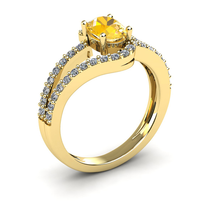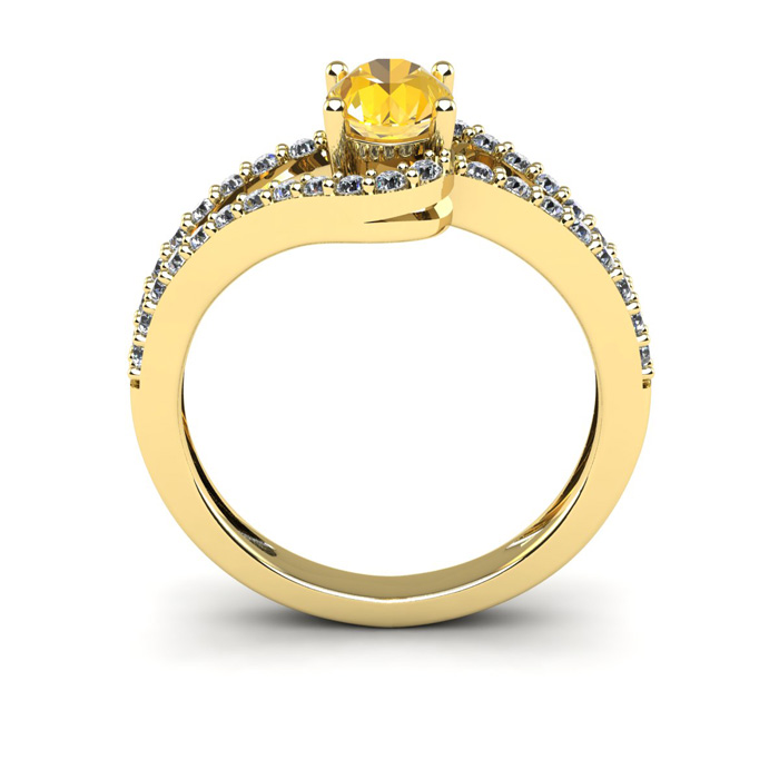 1 Carat Oval Shape Citrine and Fancy Diamond Ring In 14 Karat Yellow Gold