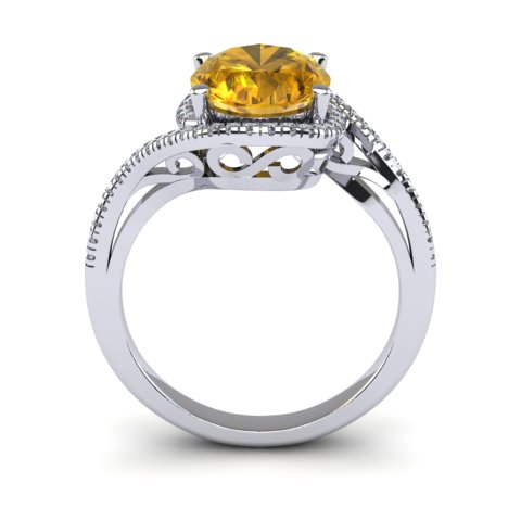 1 Carat Oval Shape Citrine and Halo Diamond Ring In 14 Karat White Gold