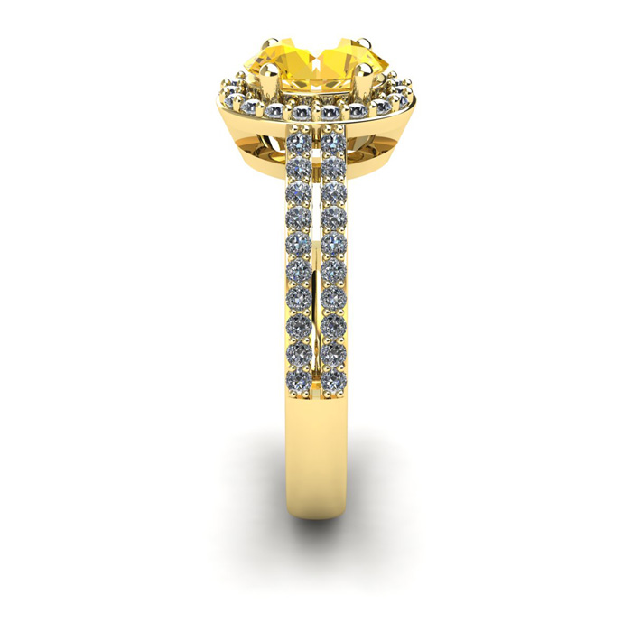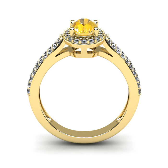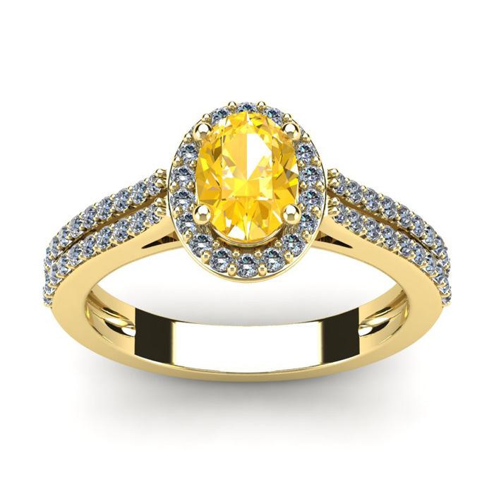 1 Carat Oval Shape Citrine and Halo Diamond Ring In 14 Karat Yellow Gold