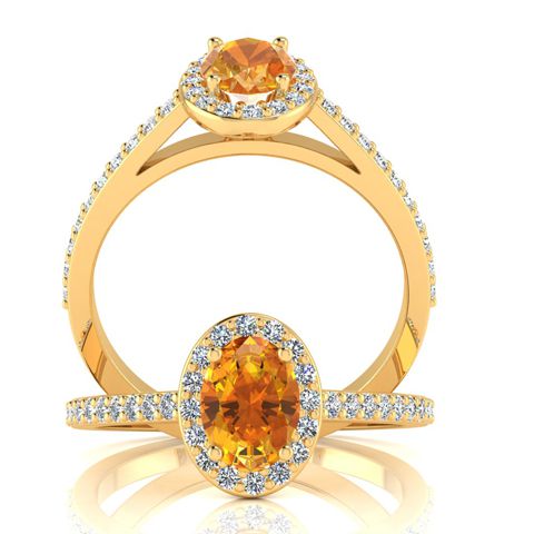 1 Carat Oval Shape Citrine and Halo Diamond Ring In 14 Karat Yellow Gold