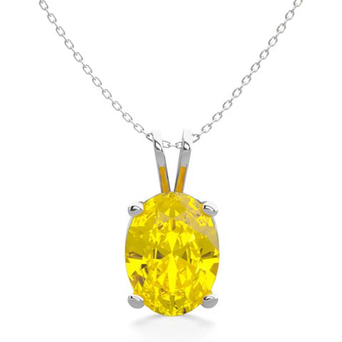 1 Carat Oval Shape Citrine Necklace In Sterling Silver, 18 Inches
