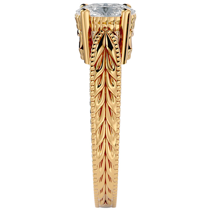 1 Carat Natural Oval Shape Diamond Solitaire Engagement Ring with Tapered Etched Band In 14 Karat Yellow Gold