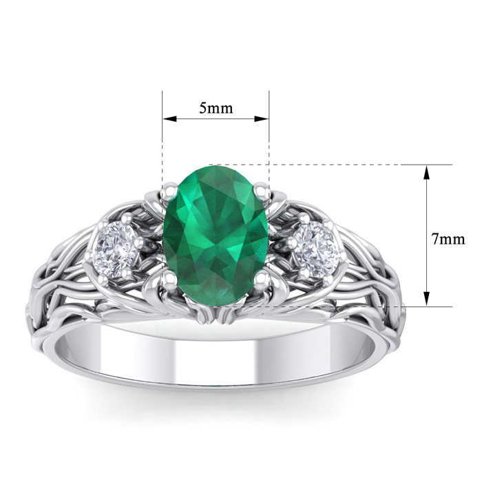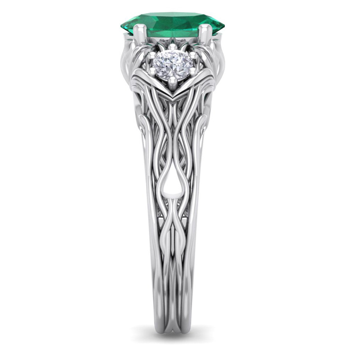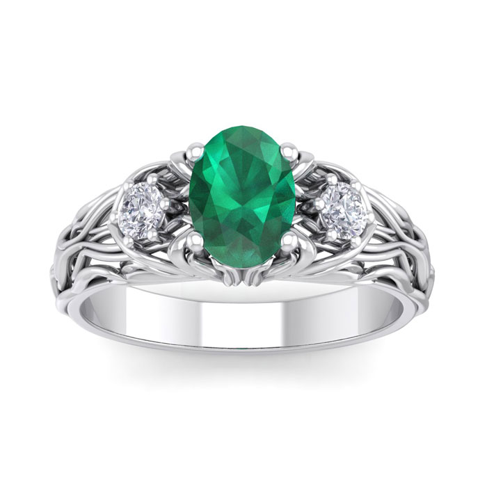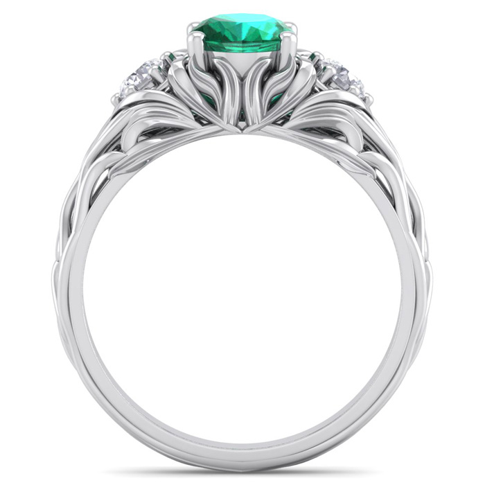 1 Carat Oval Shape Emerald and Diamond Intricate Vine Engagement Ring In 14 Karat White Gold
