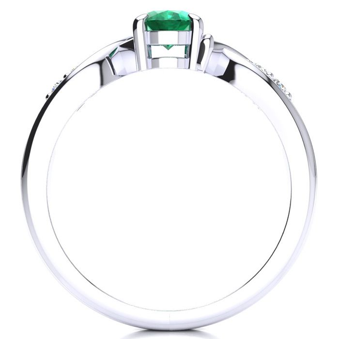 This stunning gemstone and diamond ring features one 7x5mm oval shape emerald gemstone at 0.80 carats. It is surrounded by 2 sparkling diamonds in I-J color, I1-I2 clarity at 0.04 carats. Total gem weight is 0.84 carats. This ring is crafted in 10 karat white gold.