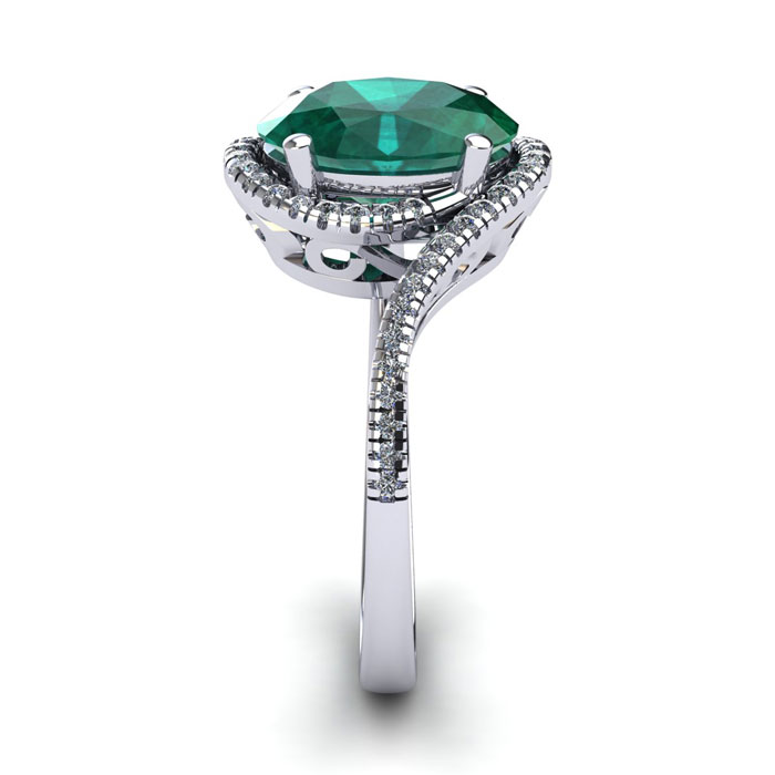 1 Carat Oval Shape Emerald and Halo Diamond Ring In 14 Karat White Gold