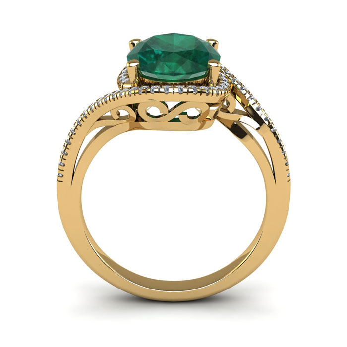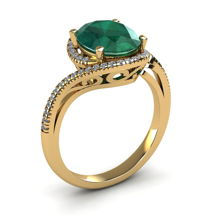 1 Carat Oval Shape Emerald and Halo Diamond Ring In 14 Karat Yellow Gold