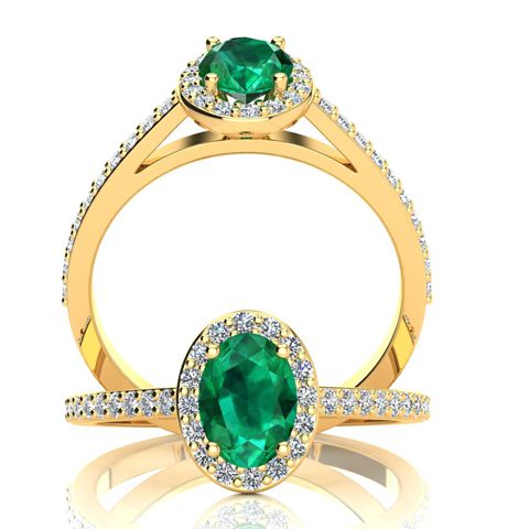 1 Carat Oval Shape Emerald and Halo Diamond Ring In 14 Karat Yellow Gold