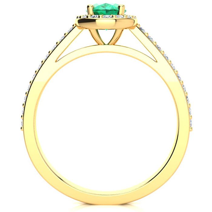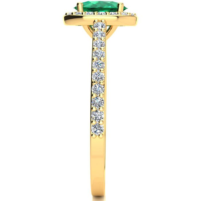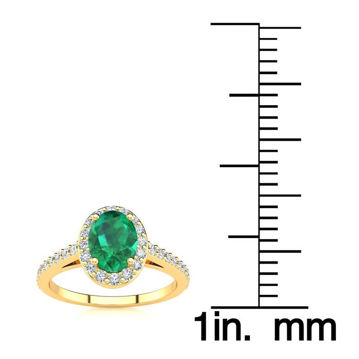 1 Carat Oval Shape Emerald and Halo Diamond Ring In 14 Karat Yellow Gold