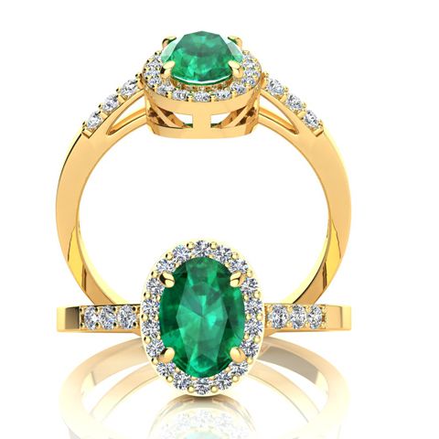 1 Carat Oval Shape Emerald and Halo Diamond Ring In 14K Yellow Gold