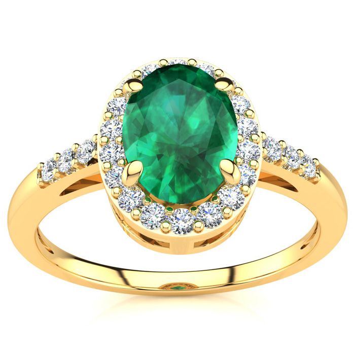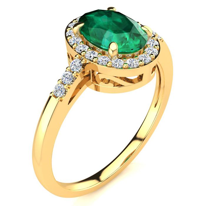 1 Carat Oval Shape Emerald and Halo Diamond Ring In 14K Yellow Gold