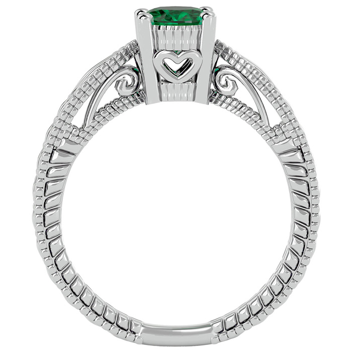 This elegant gemstone ring features one 8x6mm oval shape emerald gemstone weighing approximately 1 carat. This ring is in 14 karat white gold.