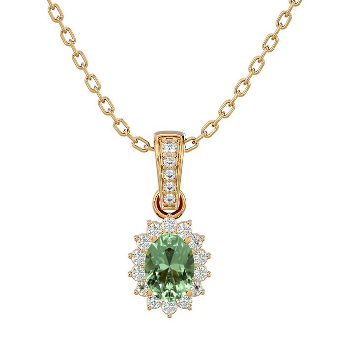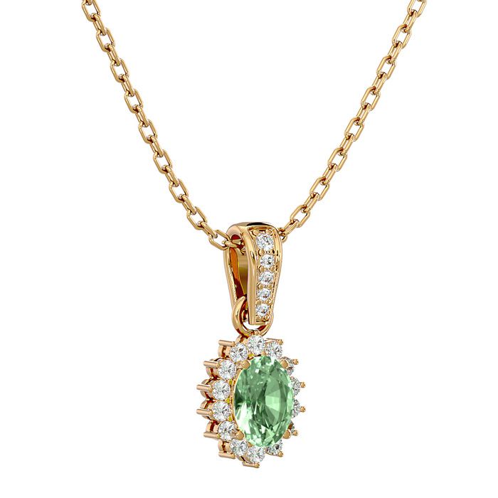 1 Carat Oval Shape Green Amethyst and Diamond Necklace In 14 Karat Yellow Gold, 18 Inches