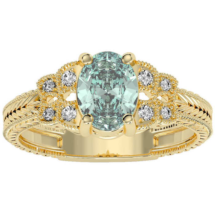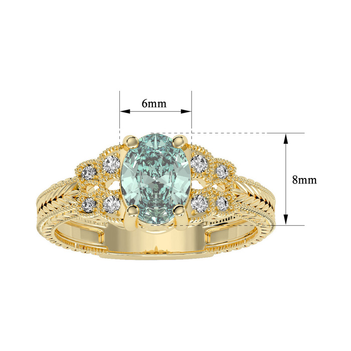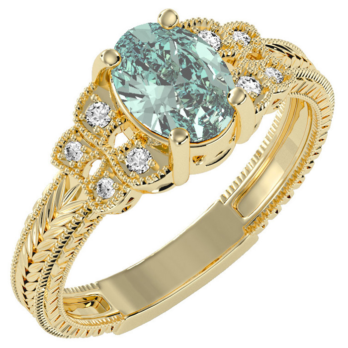 1 Carat Oval Shape Green Amethyst and Diamond Ring In 10 Karat Yellow Gold