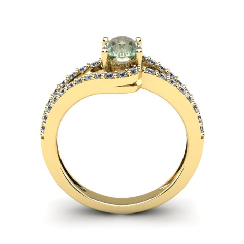 1 Carat Oval Shape Green Amethyst and Fancy Diamond Ring In 14 Karat Yellow Gold