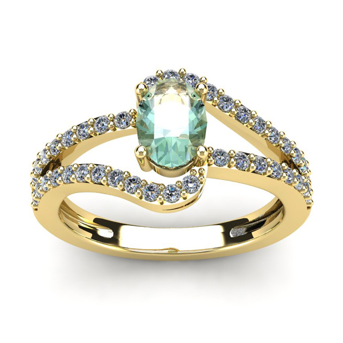 1 Carat Oval Shape Green Amethyst and Fancy Diamond Ring In 14 Karat Yellow Gold