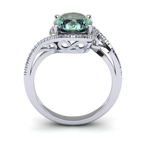 1 Carat Oval Shape Green Amethyst and Halo Diamond Ring In 14 Karat White Gold