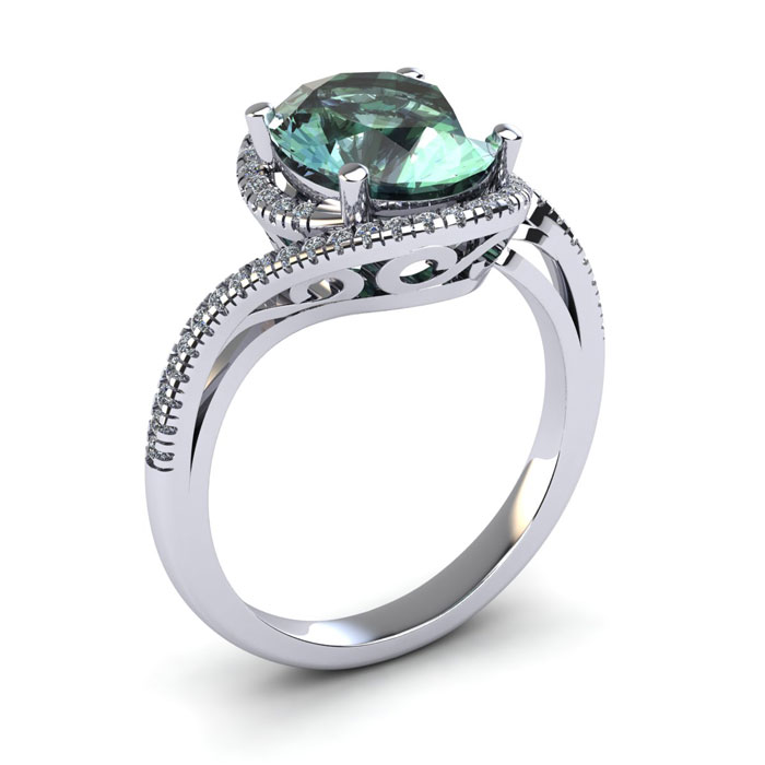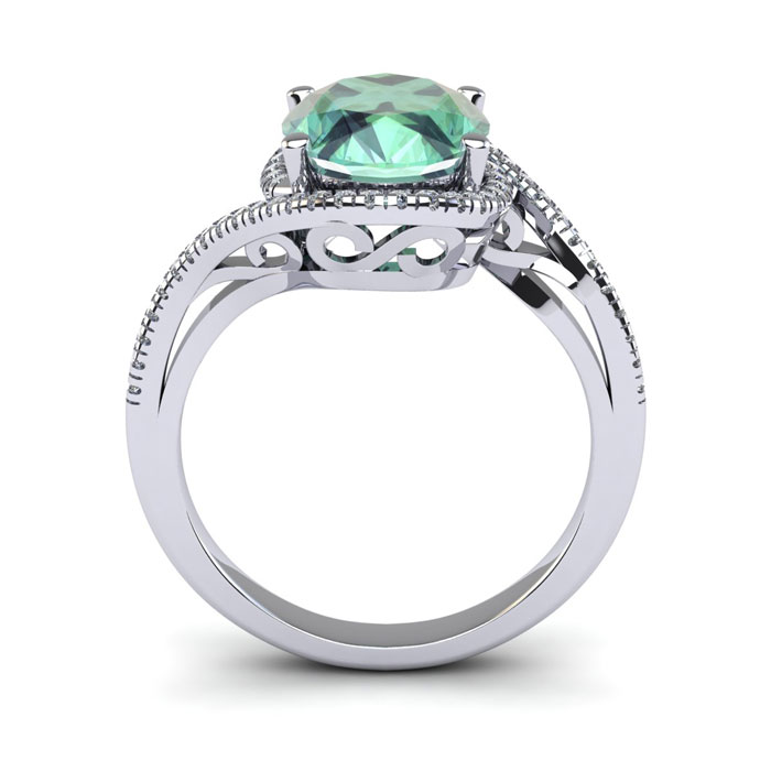 1 Carat Oval Shape Green Amethyst and Halo Diamond Ring In 14 Karat White Gold