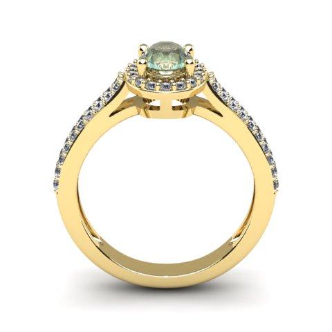 1 Carat Oval Shape Green Amethyst and Halo Diamond Ring In 14 Karat Yellow Gold