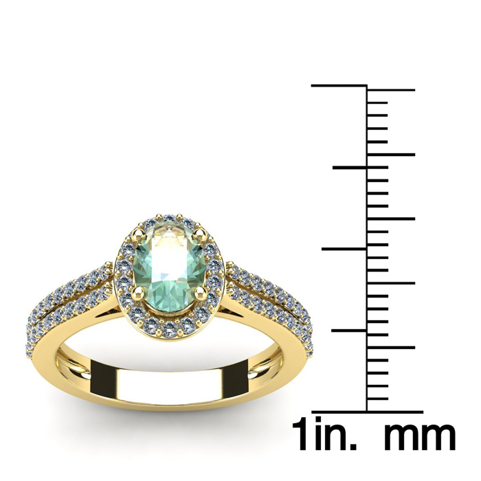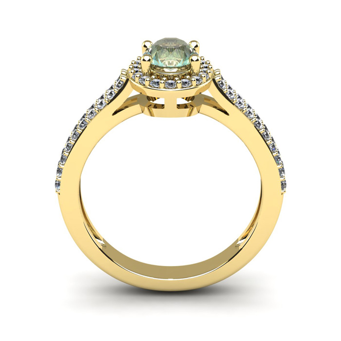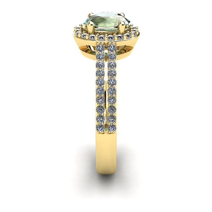 1 Carat Oval Shape Green Amethyst and Halo Diamond Ring In 14 Karat Yellow Gold