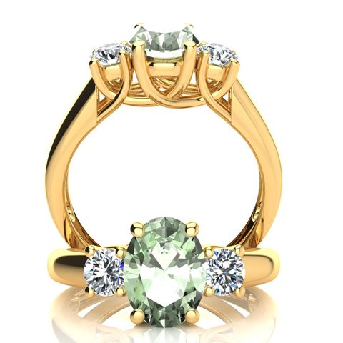 1 Carat Oval Shape Green Amethyst and Two Diamond Ring In 14 Karat Yellow Gold