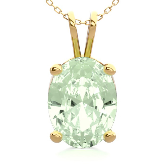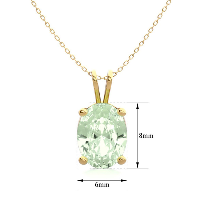 1 Carat Oval Shape Green Amethyst Necklace In 14K Yellow Gold Over Sterling Silver, 18 Inches