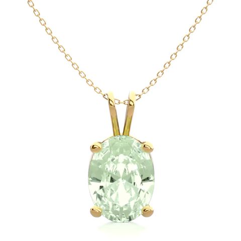 1 Carat Oval Shape Green Amethyst Necklace In 14K Yellow Gold Over Sterling Silver, 18 Inches