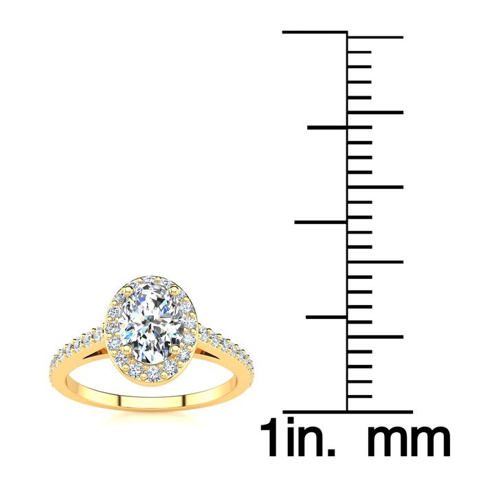1 Carat Natural Oval Shape Halo Diamond Engagement Ring in 14 Karat Yellow Gold