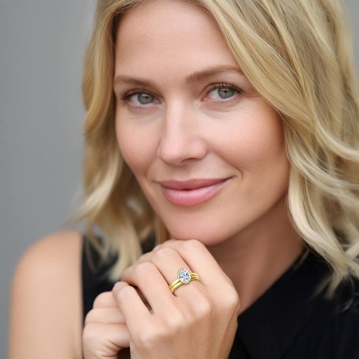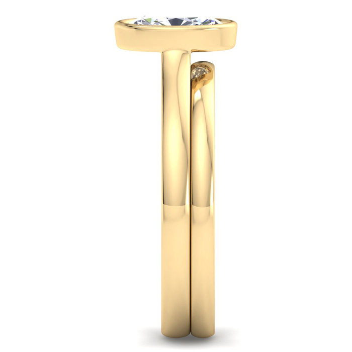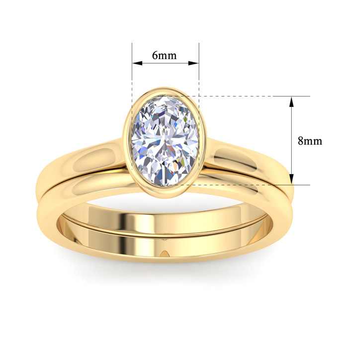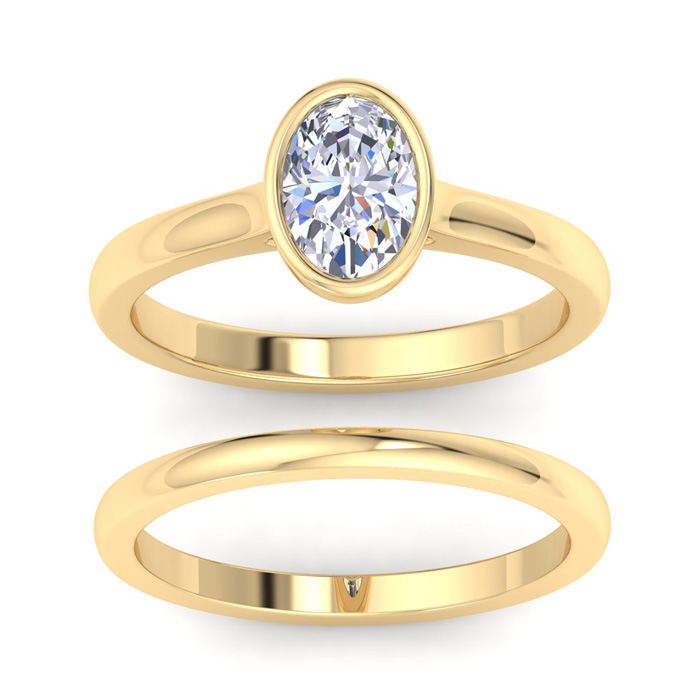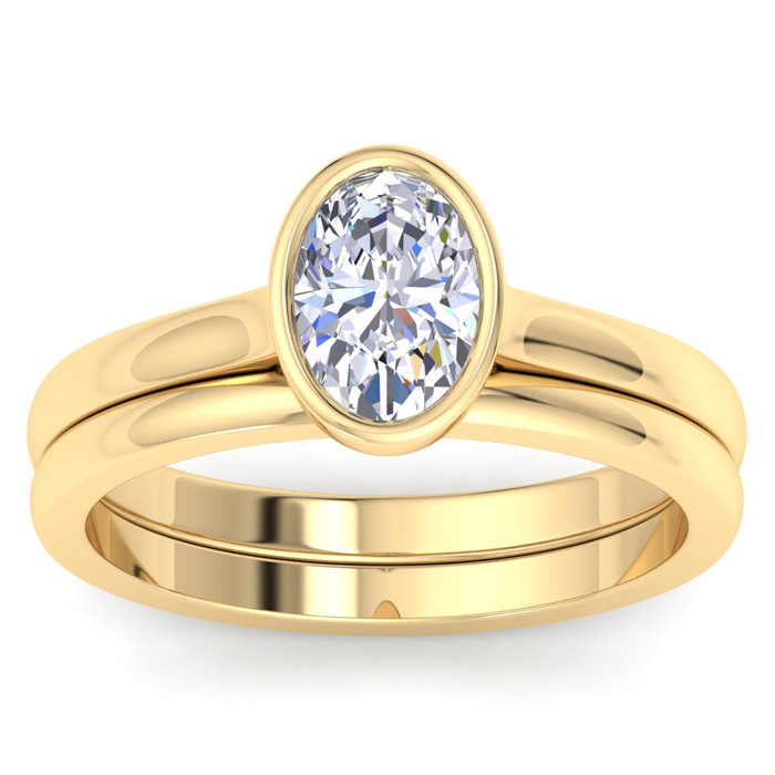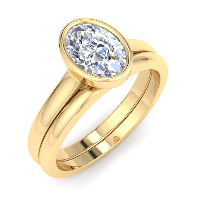 1 Carat Oval Shape Lab Grown Diamond Ring With Matching Band In 14K Yellow Gold, Solitaire Bezel Setting