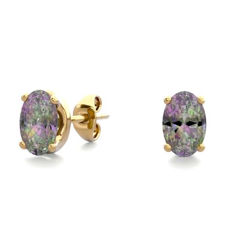1 Carat Oval Shape Mystic Topaz Stud Earrings In 14K Yellow Gold Over Sterling Silver