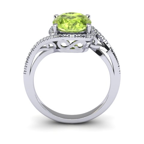 1 Carat Oval Shape Peridot and Halo Diamond Ring In 14 Karat White Gold