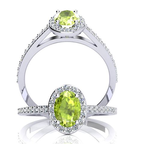 1 Carat Oval Shape Peridot and Halo Diamond Ring In 14 Karat White Gold