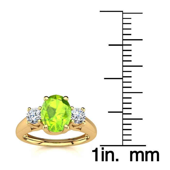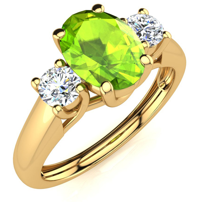 1 Carat Oval Shape Peridot and Two Diamond Ring In 14 Karat Yellow Gold