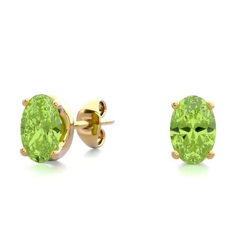 1 Carat Oval Shape Peridot Stud Earrings In 14K Yellow Gold Over Sterling Silver