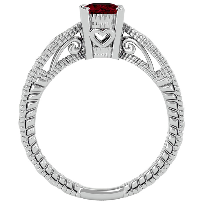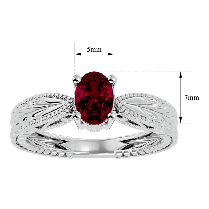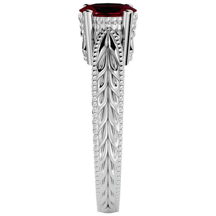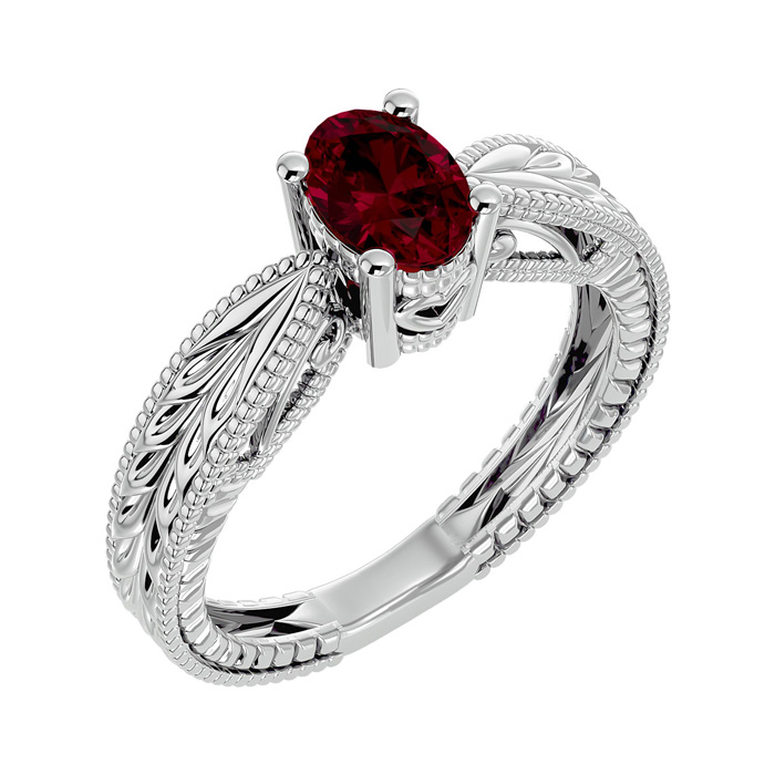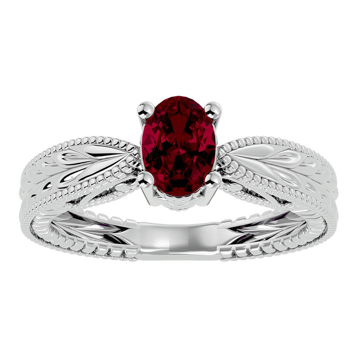 1 Carat Oval Shape Ruby Ring With Tapered Etched Band In 14 Karat White Gold