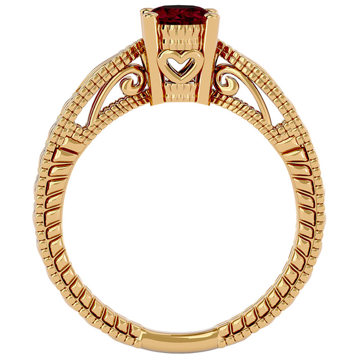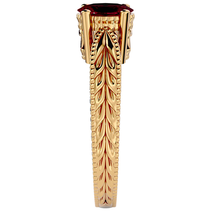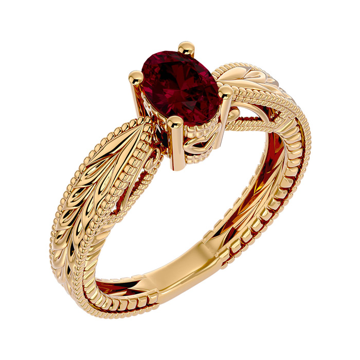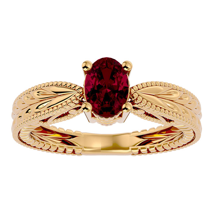 1 Carat Oval Shape Ruby Ring With Tapered Etched Band In 14 Karat Yellow Gold