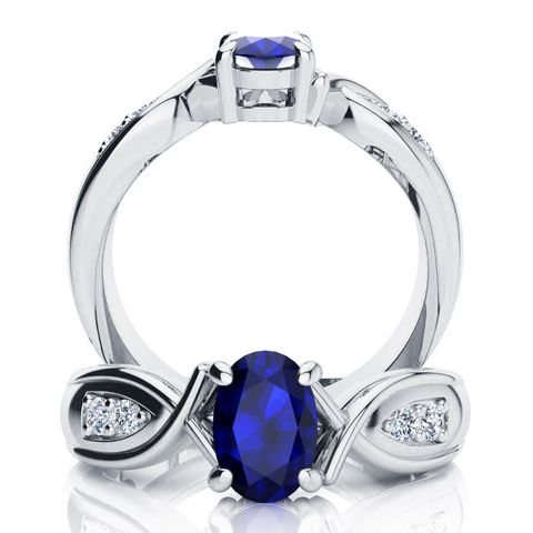 1 Carat Oval Shape Sapphire and Four Diamond Ring In 10 Karat White Gold