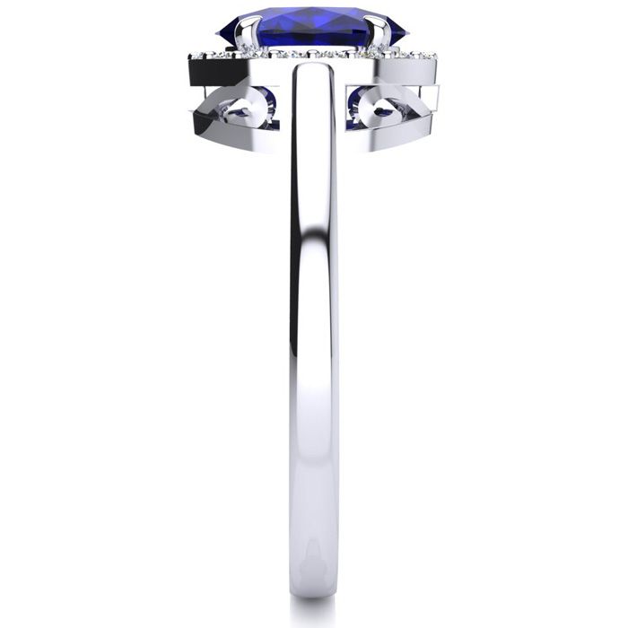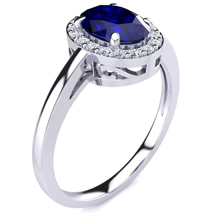 1 Carat Oval Shape Sapphire and Halo Diamond Ring In 14K White Gold