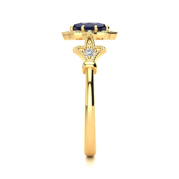 1 Carat Oval Shape Sapphire and Halo Diamond Vintage Ring In 14 Karat Yellow Gold