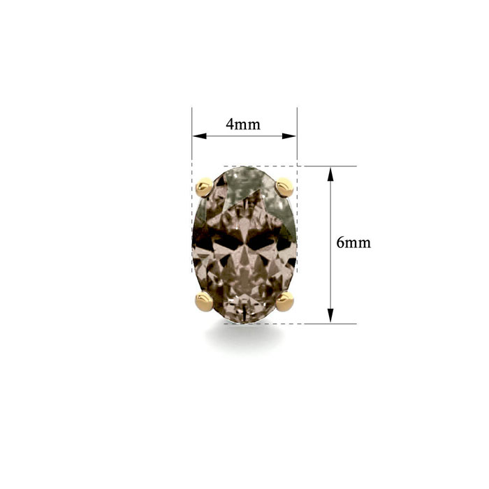 These classic stud earrings feature two 6x4mm oval shape smoky quartz gemstones. Each stone measures approximately 0.43 carats for a total approximate weight of 0.86 carats. These earrings are in 14 karat yellow gold over sterling silver and have comfortable and secure post with friction backs.
