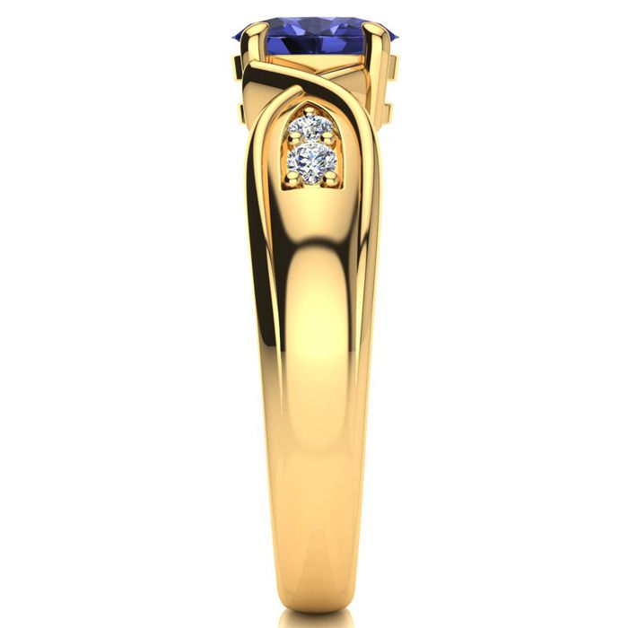 1 Carat Oval Shape Tanzanite and Four Diamond Ring In 10 Karat Yellow Gold