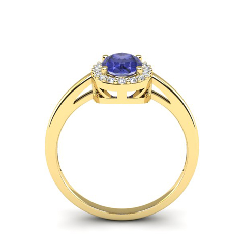 1 Carat Oval Shape Tanzanite and Halo Diamond Ring In 14K Yellow Gold