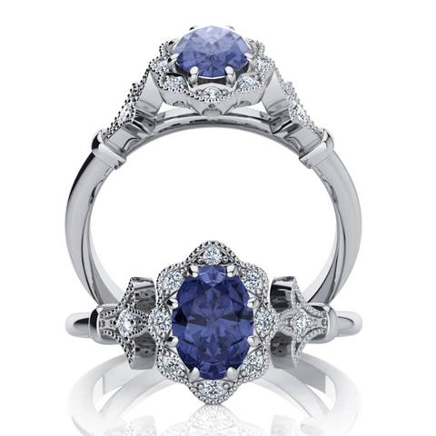 1 Carat Oval Shape Tanzanite and Halo Diamond Vintage Ring In 14 Karat White Gold