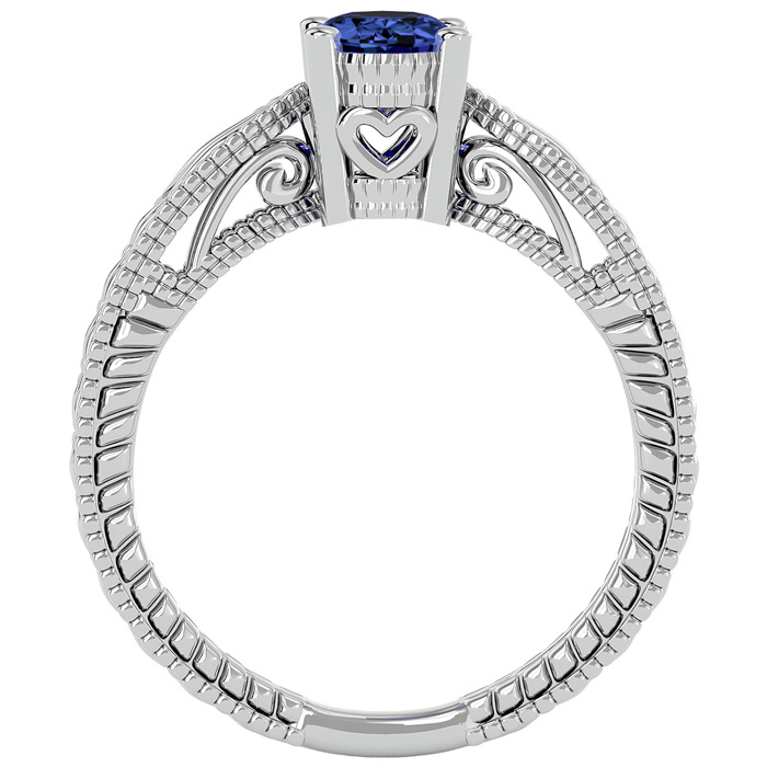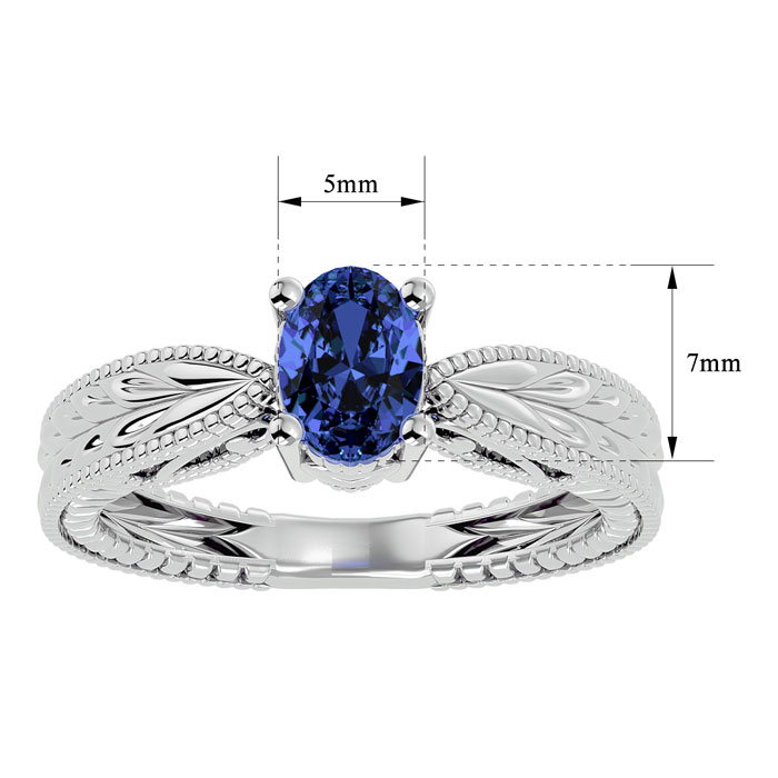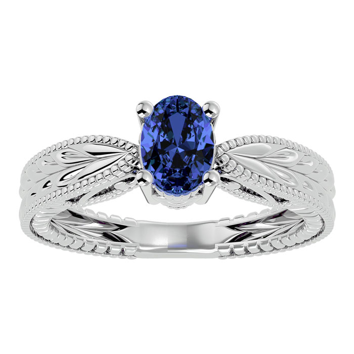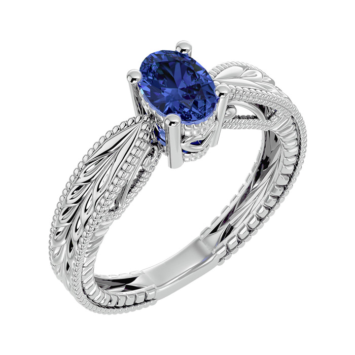 1 Carat Oval Shape Tanzanite Ring With Tapered Etched Band In 14 Karat White Gold